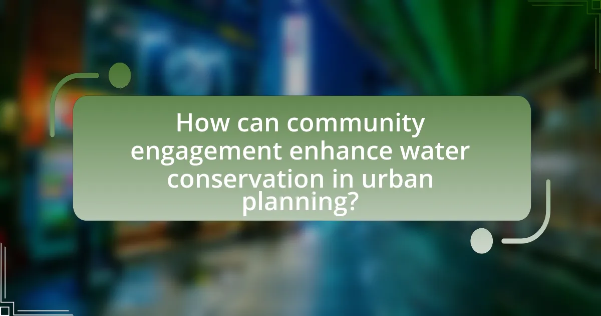 Community engagement enhances water conservation in urban planning by fostering collaboration between residents, planners, and policymakers, leading to more effective and sustainable water management strategies. Engaged communities are more likely to participate in water conservation initiatives, such as rainwater harvesting and xeriscaping, which have been shown to reduce water usage by up to 50% in some urban areas. Furthermore, studies indicate that when residents are involved in the planning process, they contribute valuable local knowledge and preferences, resulting in tailored solutions that address specific water conservation needs. For example, the City of San Diego’s community-driven water conservation programs have led to a 20% reduction in per capita water use since their implementation, demonstrating the tangible benefits of active community participation in urban planning.