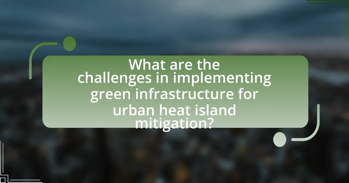 The challenges in implementing green infrastructure for urban heat island mitigation include high initial costs, maintenance requirements, and land availability. High initial costs can deter municipalities from investing in green roofs, urban forests, and permeable pavements, as these solutions often require significant upfront capital. Maintenance requirements pose another challenge, as green infrastructure needs ongoing care to remain effective, which can strain municipal budgets and resources. Additionally, land availability in densely populated urban areas limits the potential for implementing extensive green infrastructure projects, making it difficult to achieve widespread impact. These factors collectively hinder the adoption and effectiveness of green infrastructure in mitigating urban heat islands.